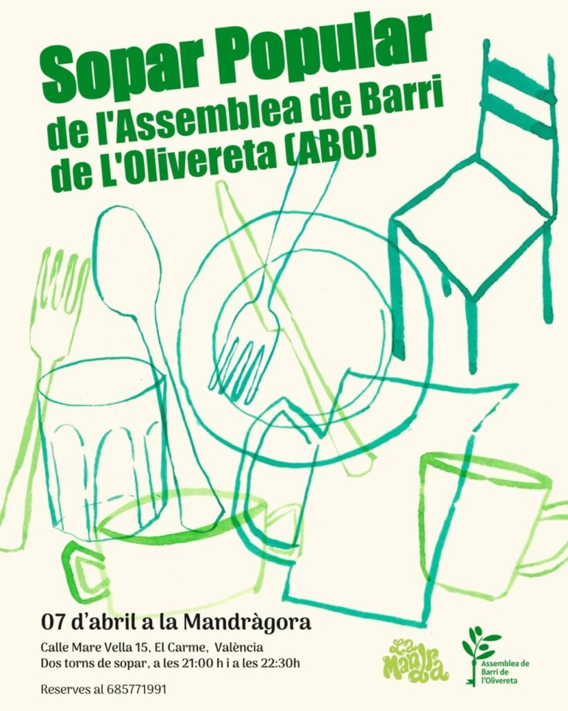 Sopar Popular de l’Assemblea de Barri de L’Olivereta a La Mandrágora